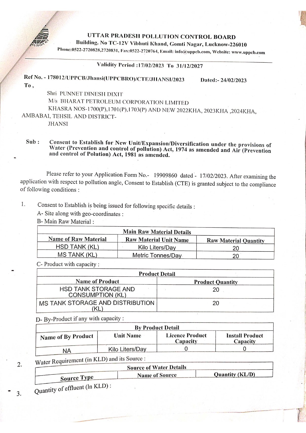 • Pollution Department NOC