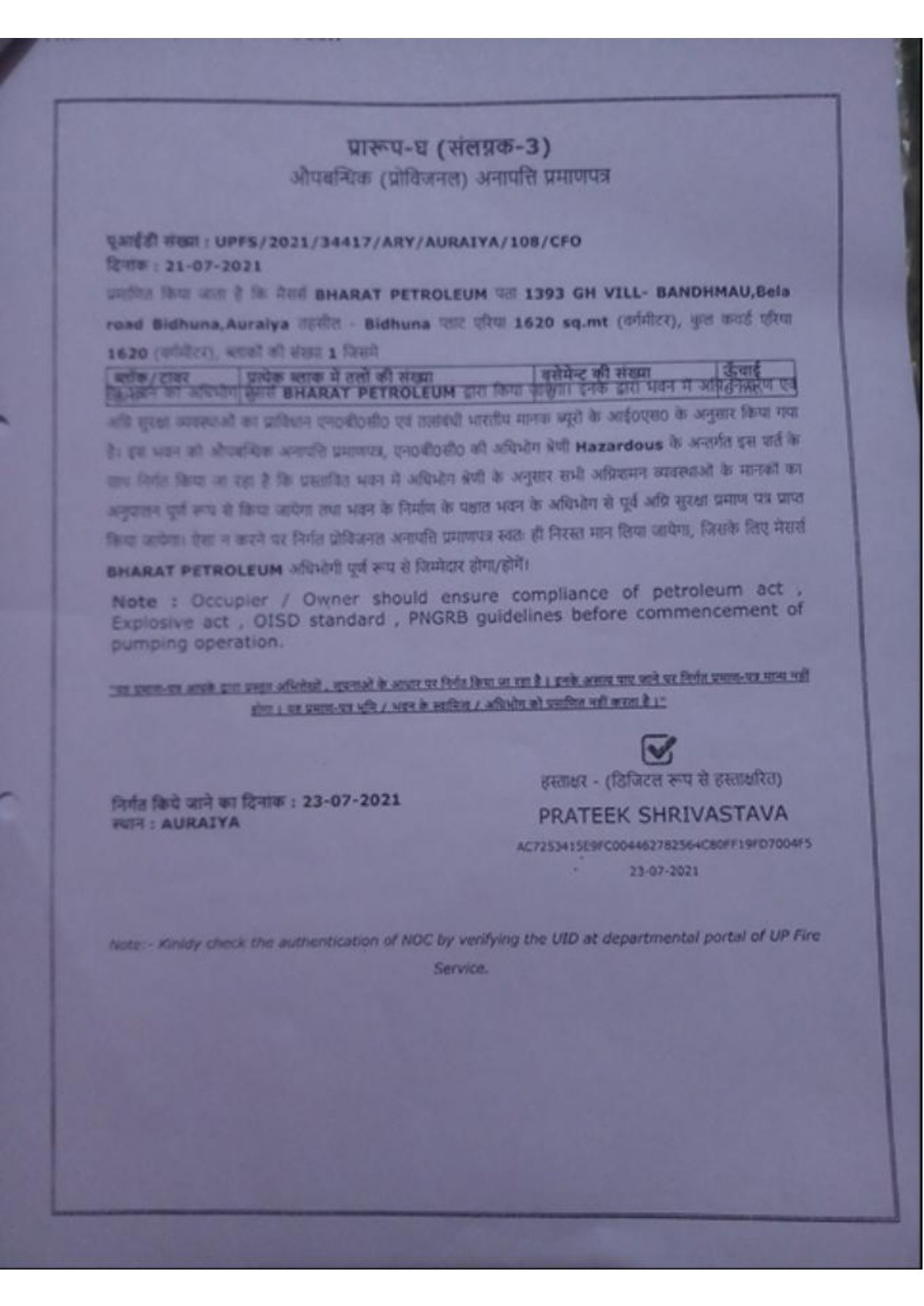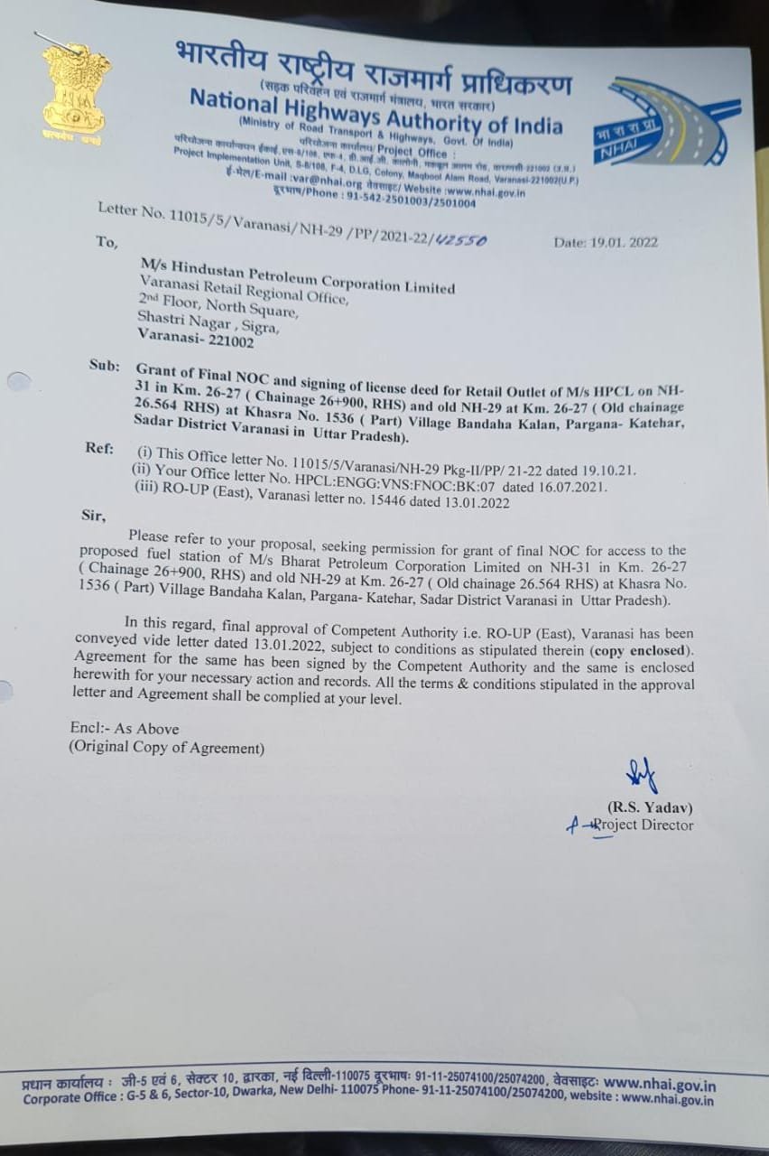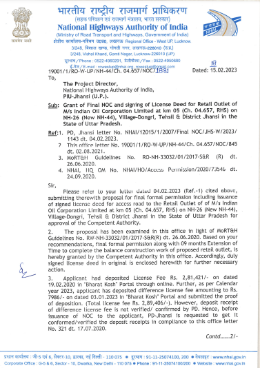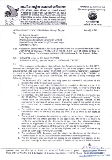 • Provisional NHAI/ NH/ SH/State PWD NOC